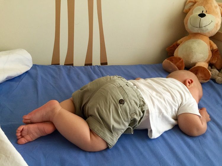 Non rotola ancora, ma visto che è un serpentello abbiamo messo il materasso della culla per terra per ulteriore protezione.