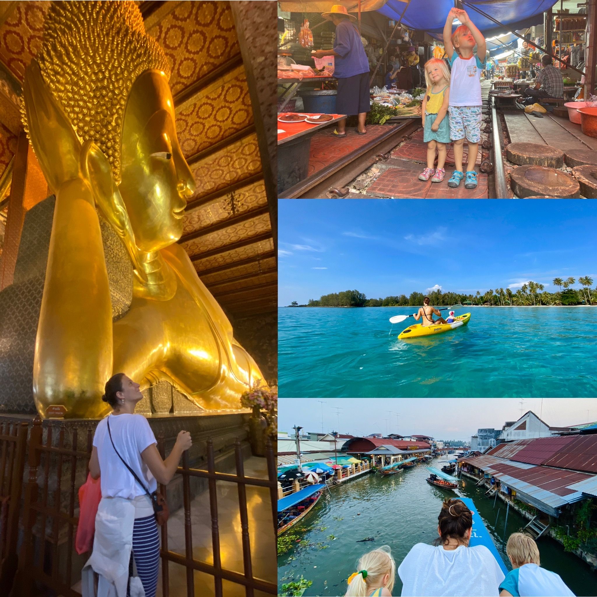 Abbiamo cenato su una barca, provato il miglior gelato di cocco in tutta la Thailandia (o almeno così ci è sembrato!), e la sera siamo saliti su una barca per un giro dei canali al tramonto, fino a vedere il lucciole sugli alberi di notte (sembrava Natale!).