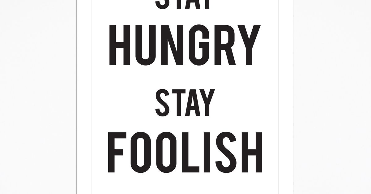 Stewart e il suo gruppo pubblicarono vari numeri di The Whole Earth Catalog e quando arrivarono alla fine del loro percorso, pubblicarono il numero finale. Era più o meno la metà degli anni Settanta e io avevo la vostra età. Nell’ultima pagina di questo numero c’era una fotografia di una strada di campagna al mattino presto, quel tipo di strada dove potreste trovarvi a fare l’autostop se siete abbastanza avventurosi. Sotto la foto erano scritte queste parole: “Stay Hungry. Stay Foolish”, siate affamati, siate folli. Era il loro messaggio di addio. Stay Hungry. Stay Foolish. Io me lo sono sempre augurato per me stesso. E adesso che vi laureate per cominciare una nuova vita, lo auguro a voi. Stay Hungry. Stay Foolish. Grazie a tutti.