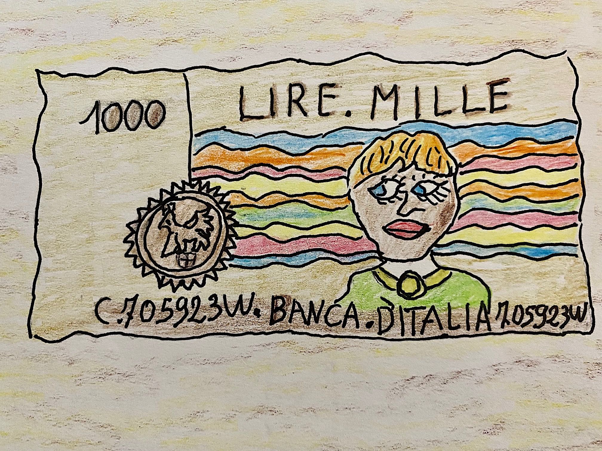 Io questo tipo di disegni li conosco bene, perché è il suo stile da sempre: lei non è una disegnatrice, ma ha sempre disegnato come hobby — “io non sono mai andata a scuola”, mi dice sempre. Quando ero piccola e passavo quasi ogni fine settimana con lei, le chiedevo un disegno e lei me lo faceva. Se non riusciva a finirli, spesso me li portava la volta dopo come regalo. Li adoravo.