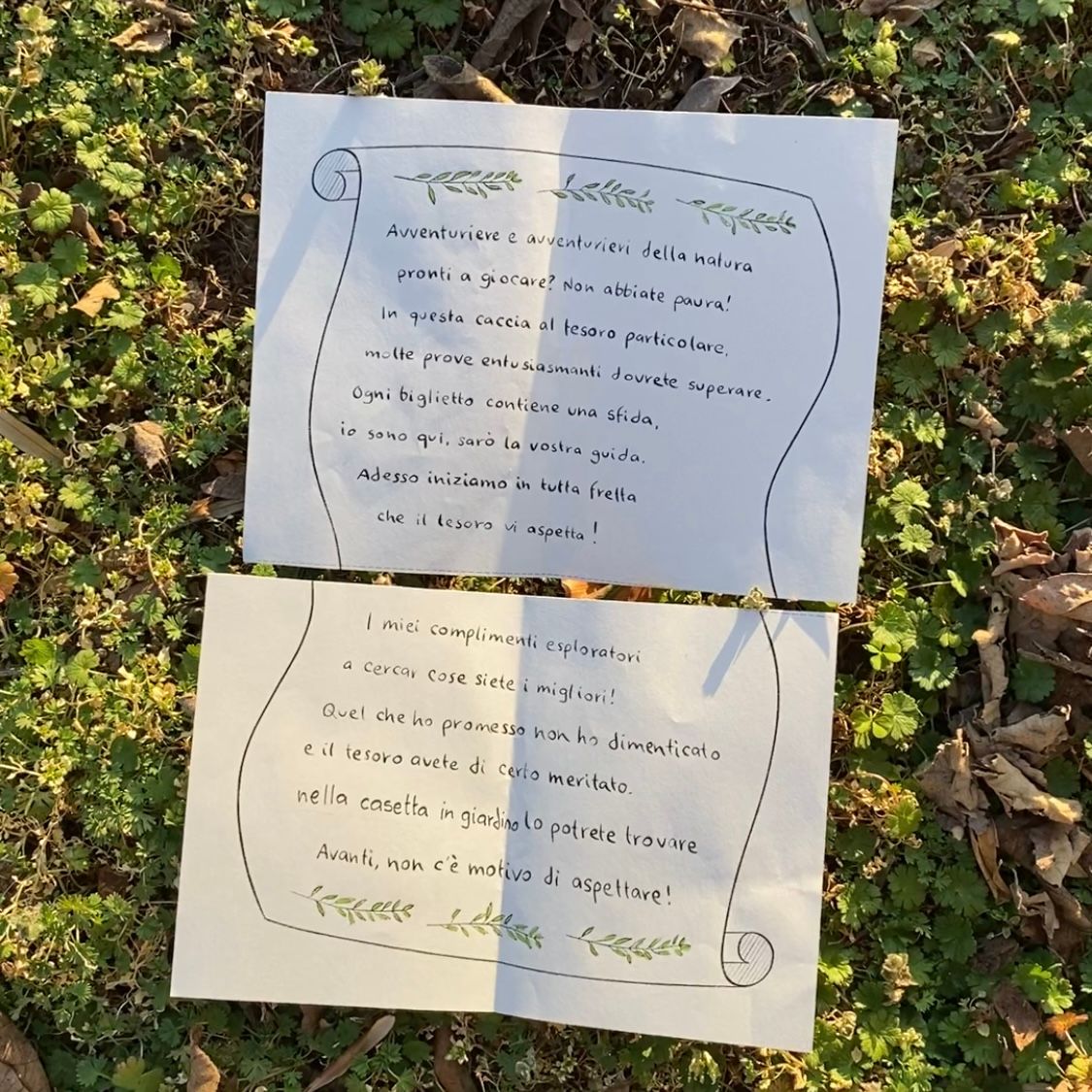 - 2 biglietti filastrocca per aprire e chiudere la caccia al tesoro