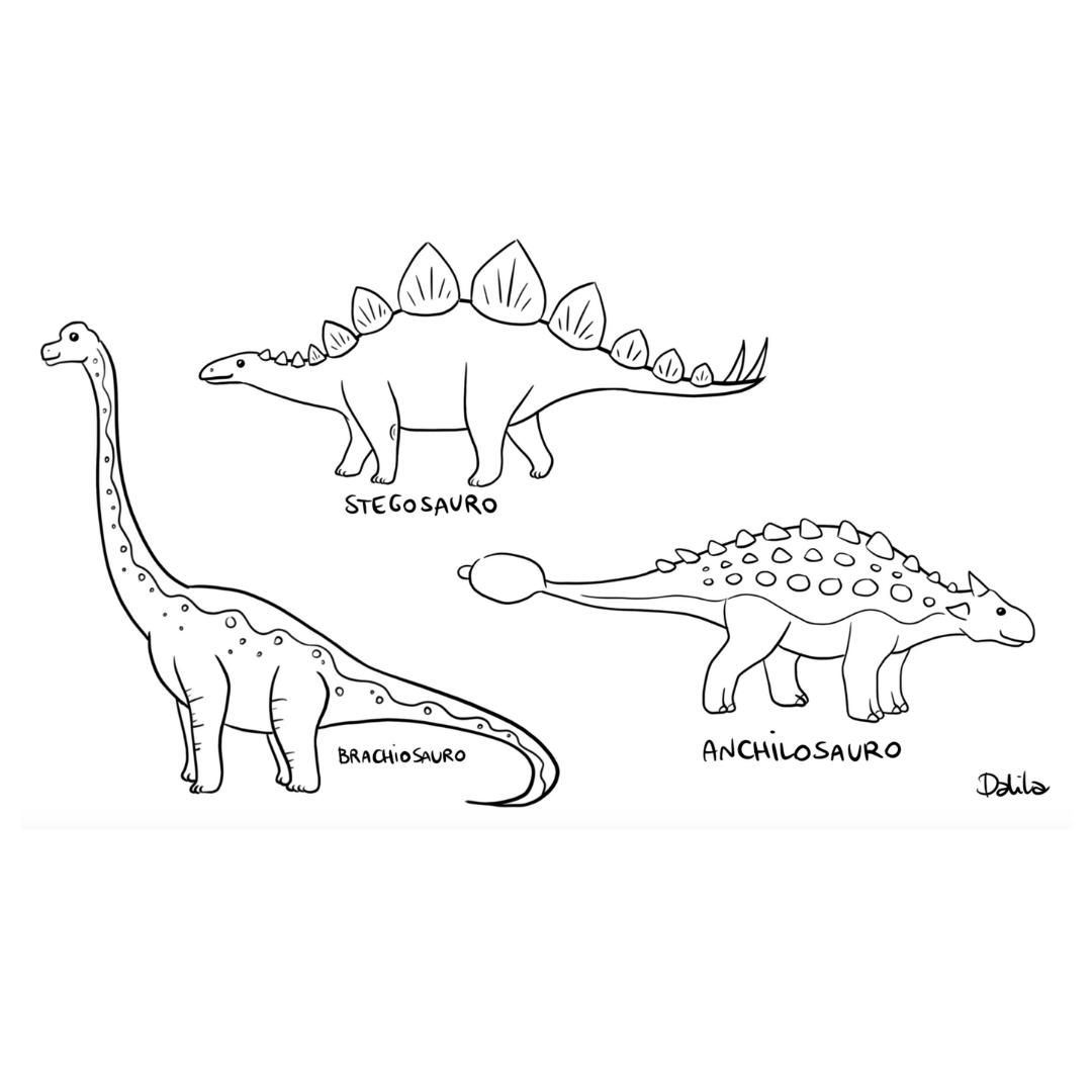 Disegniamo insieme: anchilosauro, stegosauro e branchiosauro.