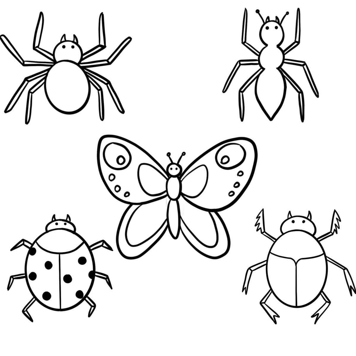 Disegniamo insieme: ragno, farfalla, formica, coccinella e scarabeo.
